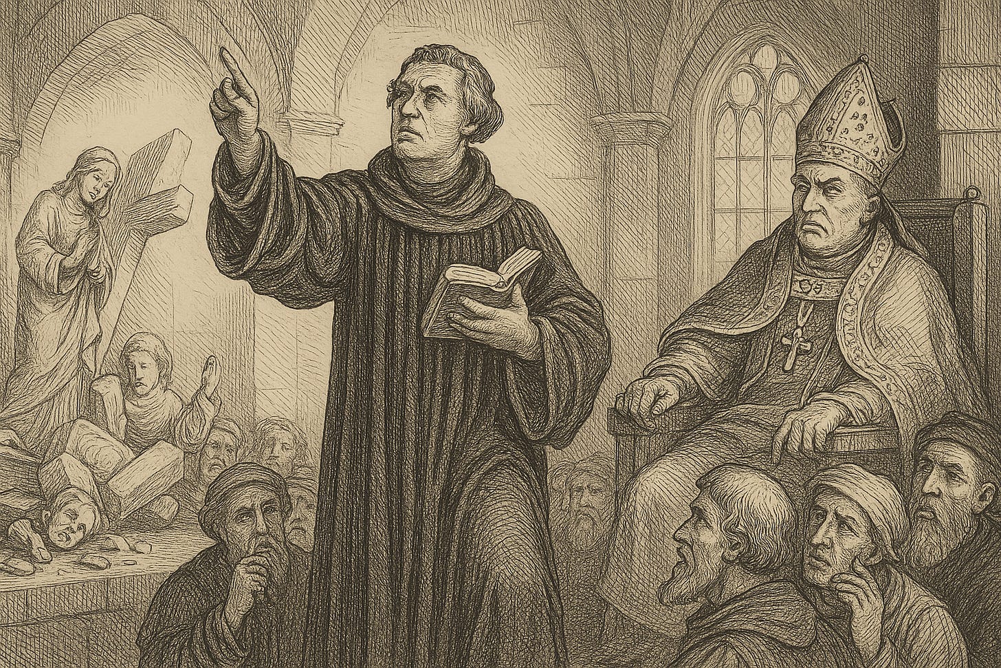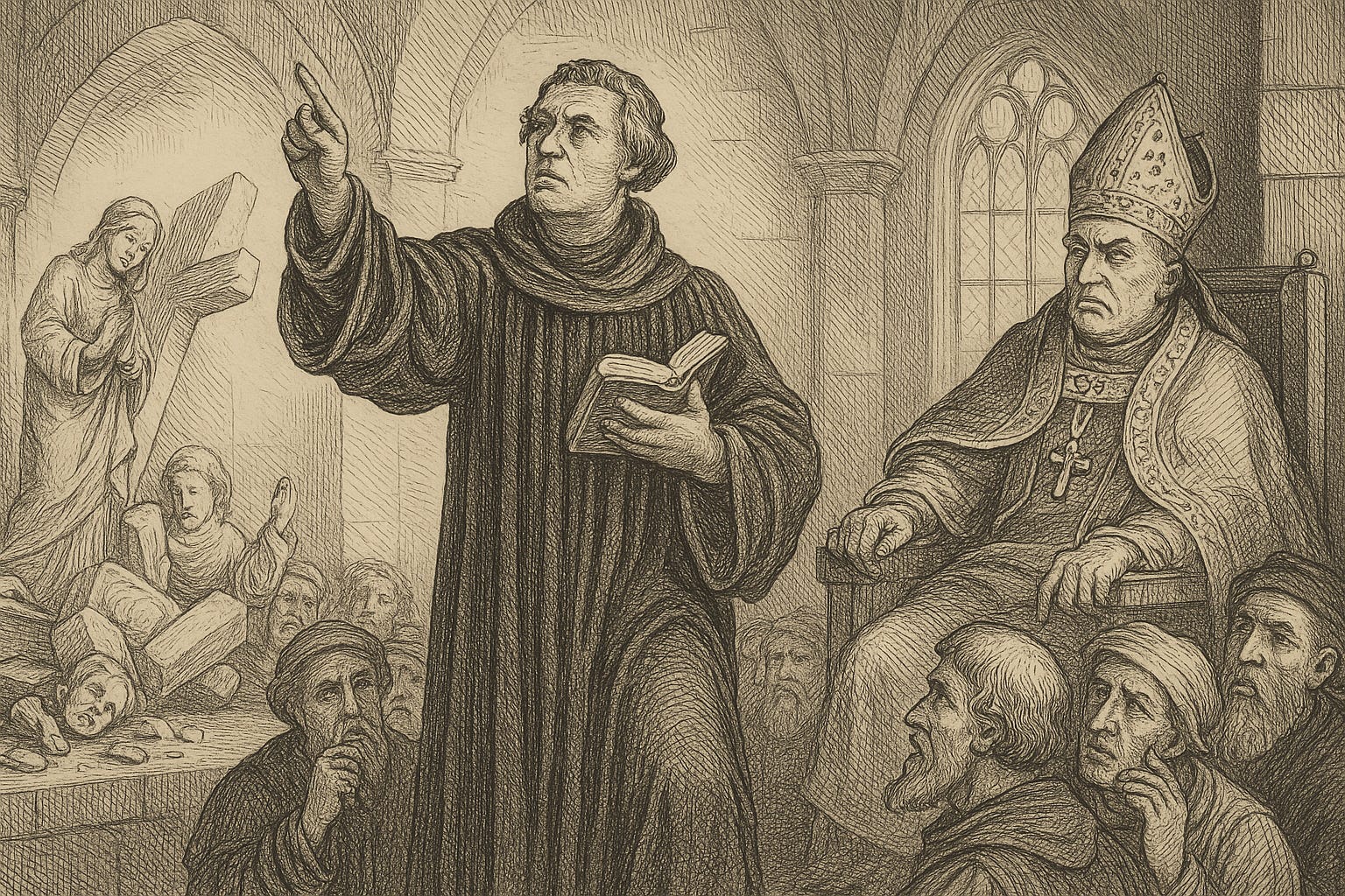 It seems to me that just about everyone who has written about the Protestant Reformation has inherited these rhetorical questions—in nearly their exact phrasings—from some learned authorities since the clichéd ‘time immemorial.’ But it is misleading, I think, to suggest that most sectarians had the lofty philosophical goal of challenging ‘inherited forms of knowledge’ (academics write this way, perhaps, because they know that the Enlightenment is coming in their next chapter); they were, rather, challenging who could interpret that inherited knowledge—scriptural knowledge at that—especially when they had a specific “who” in mind: the repressive, corrupt, hierarchical, and kind of flamboyant Catholic Church.